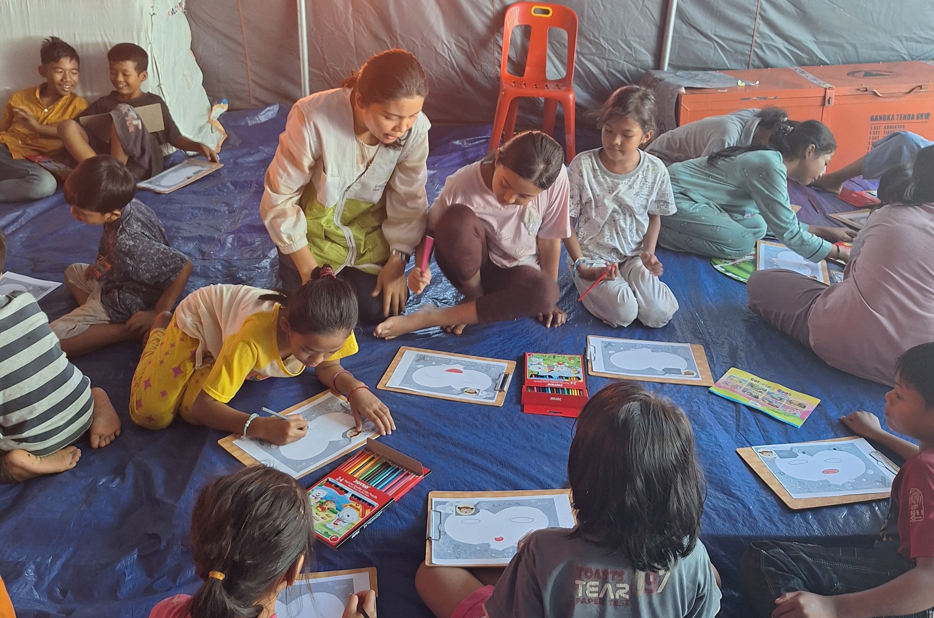 Melalui kegiatan psikososial kita dapat membantu anak memproses dan mengekspresikan emosinya dengan baik serta mendorong interaksi sosial yang mendukung. Sehingga, anak tidak merasa sendiri. Tak hanya itu, aktvititas ini juga bertujuan untuk membentuk lingkungan yang aman dan nyaman bagi anak yang dapat membantu pemulihan psikologis mereka.