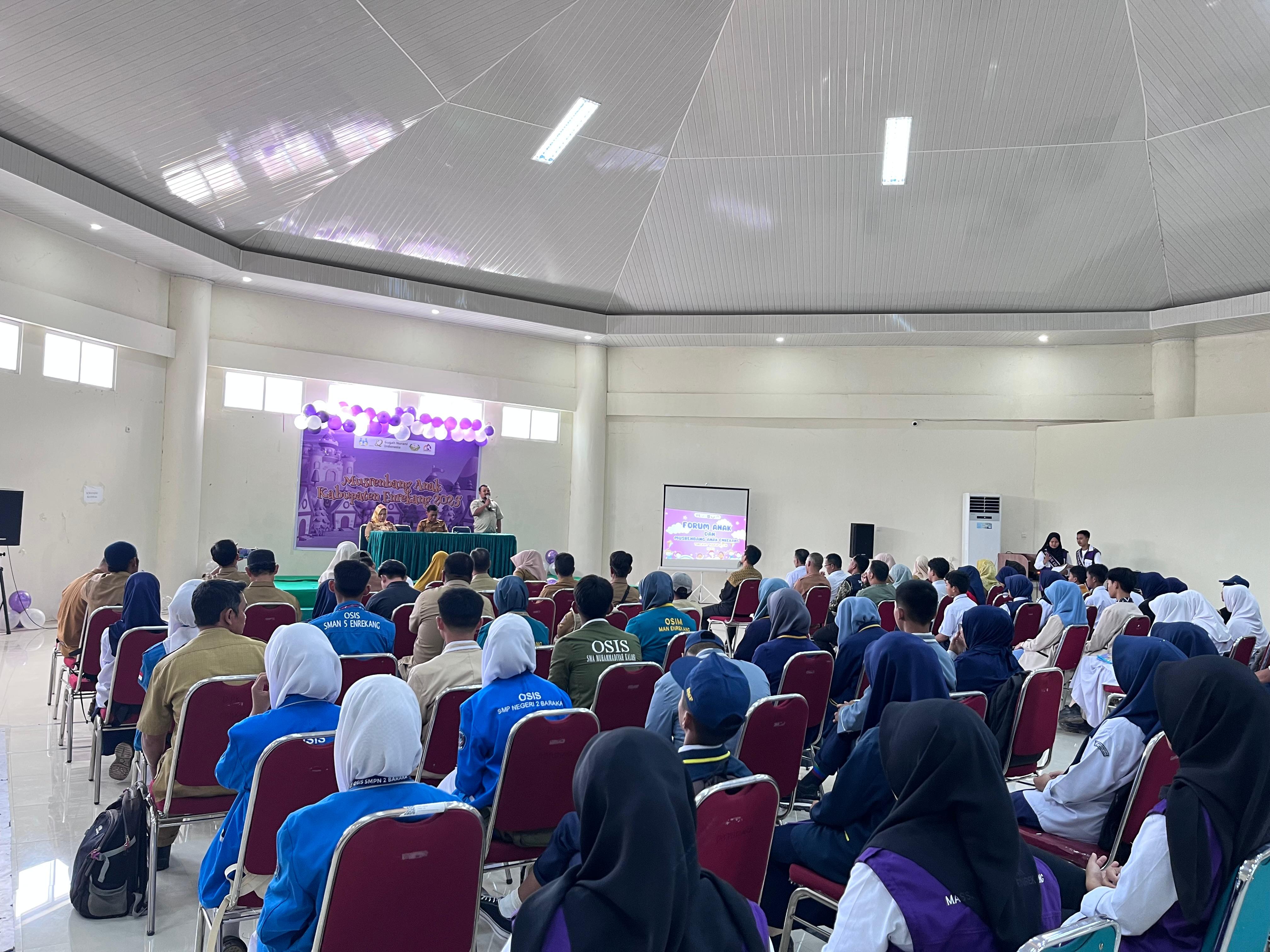 Terdapat 50 peserta anak dari 12 kecamatan di acara Musrenbang Anak Tingkat Kabupaten Enrekang. Perwakilan Organisasi Perangkat Daerah (OPD), guru pendamping ikut serta juga dalam acara ini. Turut hadir dalam kegiatan ini Bupati Enrekang serta Bunda Forum Anak Kabupaten Enrekang, yang secara langsung mendengar aspirasi dan harapan anak-anak Enrekang.