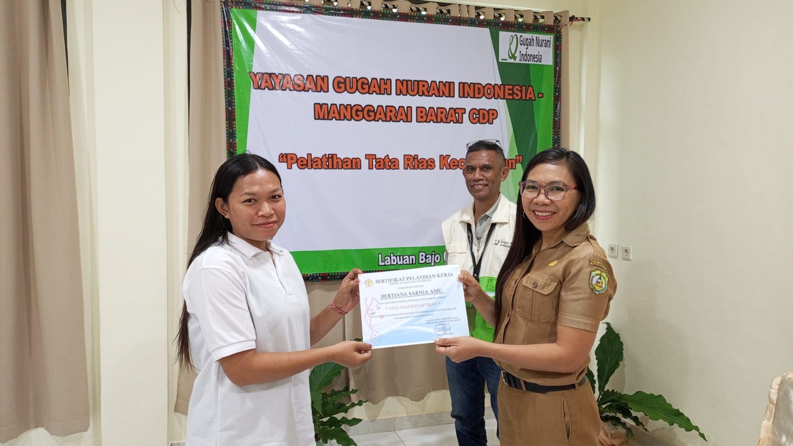 Dalam rangka meningkatkan keterampilan dan kemandirian ekonomi generasi muda, Yayasan Gugah Nurani Indonesia Manggarai Barat – Community Development Project (CDP) melaksanakan Pelatihan Tata Rias Kecantikan di BLK (Balai Latihan Kerja) Komunitas Karya Murni Labuan Bajo pada tanggal 4–16 Desember 2025.
